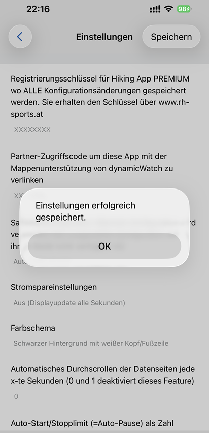 Step 6: Change Configuration Please note that configuration changes ONLY apply on your Garmin device if you have entered a proper PREMIUM activation key in the field marked in the picture below. For details about the possible key types, please refer to the registration key details. If a proper activation key is entered, you can change ALL configurations according to your needs. Finnaly press the "Save" button at the bottom of the dialog. The Garmin Express Software will update the configurations on your device. In case of errors, please refer to the documentation provided by Garmin.