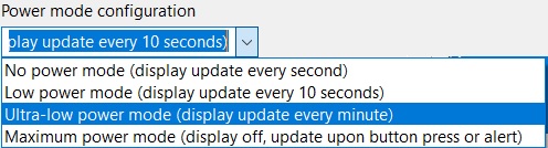 The user can choose one of the following four different power modes in order to reduce battery drain: