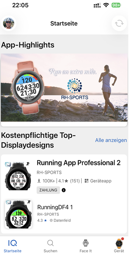- Open the Connect IQ Store app on your phone.
