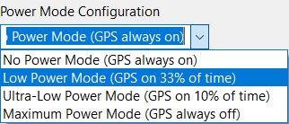 The **Power mode ** configuration option allows you to select between following four different power modes in order to reduce battery drain: