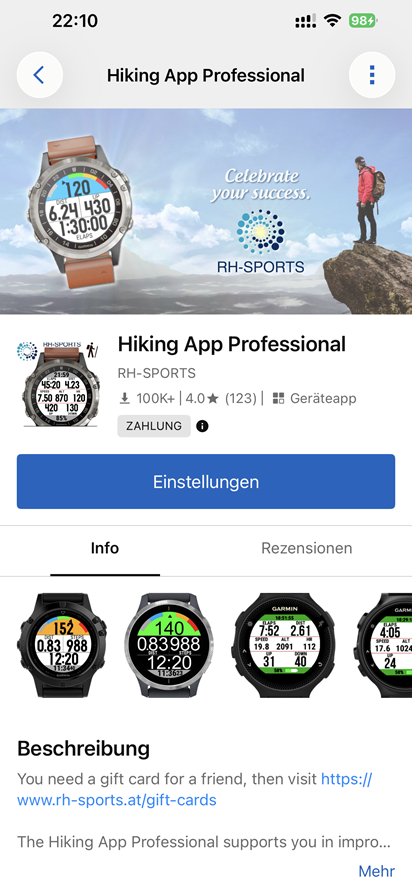 Step 8: Start Application or Data Field on Device Please start our RH-SPORTS application or data field on your Garmin device. If you have the PREMIUM Version (key was correct), then all your configuration changes should have been applied. If not, please refer to our Frequently Asked Questions.